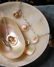 Today’s DIY Mother’s Day gift idea is photograph jewelery. This is one of many adorable idea that comes from Martha Stewart.