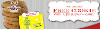 Free Cookie at Subway w/ $10 GC Purchase